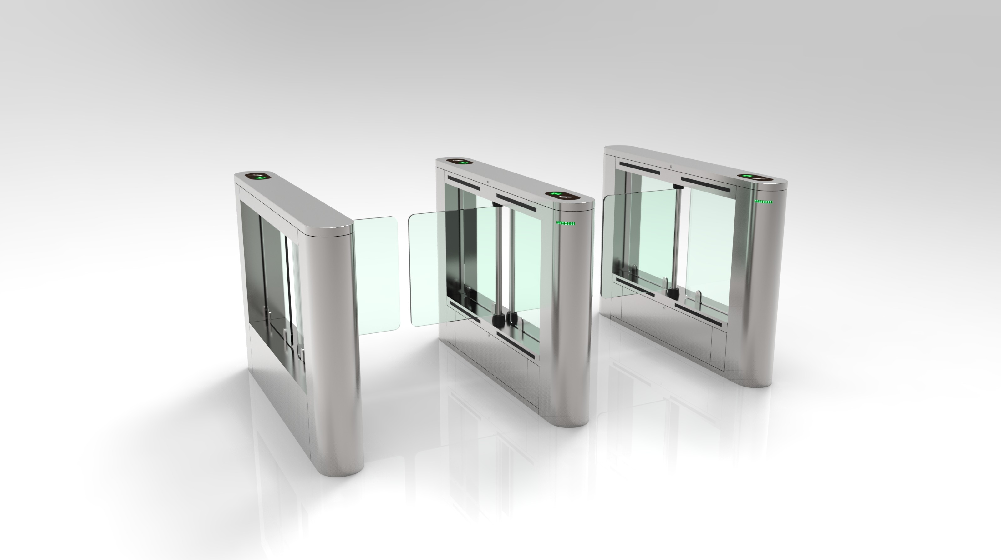 During power failure, swing barrier will automatically open for free pass through. This will fast escape in the event of emergency.